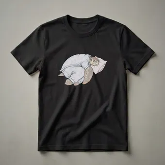 Sea turtles, known for their ancient lineage and graceful movements through ocean waters, are depicted here in a surprisingly relatable scene of slumber. This graphic tee showcases a charming sea turtle completely at ease, snuggled under a light blue, crescent-patterned blanket and resting its head on a soft pillow. The turtle is dressed in matching pajamas, complete with a button-up top and pants, highlighting the whimsical nature of the artwork. Sea turtles are fascinating creatures that spend most of their lives in the ocean, migrating vast distances and nesting on beaches. This shirt captures a moment of pure relaxation, a stark contrast to their often arduous journeys. It's a playful design that appeals to anyone who appreciates marine life and the simple joy of a cozy night's sleep. This t-shirt is a thoughtful gift for the turtle enthusiast in your life, or for someone who simply loves a good laugh and a comfortable tee. It's a go-to shirt for casual outings, lounging at home, or attending a relaxed game night. The detailed drawing style brings the sleepy sea turtle to life, making it an eye-catching piece for any wardrobe. Whether you're a fan of marine biology or just enjoy a humorous take on animal behavior, this shirt is sure to bring a smile.