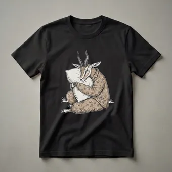 Gazelle owners and fans of unique animal art will appreciate this eye-catching graphic tee. The illustration depicts a gazelle, known for its incredible leaping abilities and speed across African savannas, in a surprisingly sleepy pose. Dressed in a detailed pajama set adorned with a delicate floral pattern, the gazelle is shown curled up and embracing a large pillow, its eyes closed in slumber. This t-shirt captures a humorous contrast between the gazelle's wild nature and the universal desire for rest. It's a comfortable and conversation-starting piece of apparel that makes a thoughtful gift for friends or family members who appreciate a good laugh and a cozy night's sleep. Wear this shirt to your next pajama party or simply lounge in comfort while dreaming of the plains. This unique shirt is a staple for anyone who enjoys a touch of whimsy in their wardrobe.