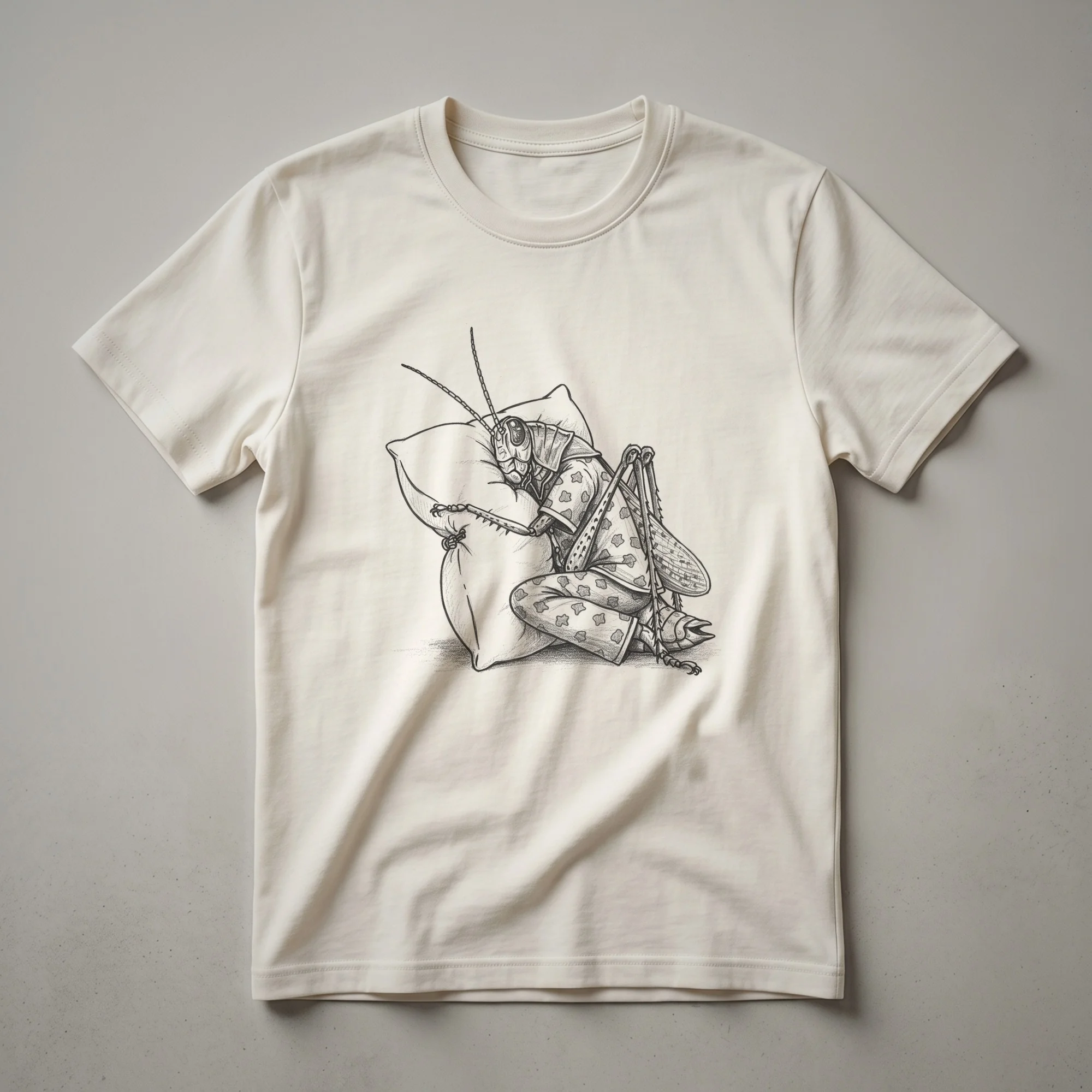 Grasshoppers, known for their powerful hind legs and distinctive chirping sounds, are often associated with warm weather and open fields. This graphic tee captures a different side of these fascinating insects, presenting a whimsical, hand-drawn illustration of a grasshopper sporting a cozy sleeping cap. With its eyes closed and a serene expression, this grasshopper embodies the spirit of relaxation and downtime. This t-shirt is a playful nod to anyone who appreciates the humor in everyday life and enjoys a good night's sleep. It's a staple in the collection for those who find joy in quirky designs and want to express their love for insects in a lighthearted way. This tee works well for individuals who enjoy casual wear and want to add a touch of personality to their wardrobe. It makes a thoughtful gift for friends or family members who have a fondness for entomology or simply appreciate a good laugh. Imagine wearing this comfortable shirt while lounging at home, enjoying a lazy weekend morning, or even to a casual game night with friends. It’s a conversation starter that’s sure to bring smiles.