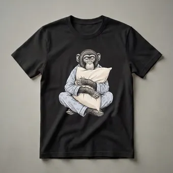 Chimpanzees, known for their intelligence and complex social structures, are often depicted in relatable human scenarios. This graphic tee captures that sentiment with a charming illustration of a chimpanzee dressed in light blue pajamas adorned with moons and stars. The primate is shown sitting cross-legged, eyes gently closed, and hugging a large, light-colored pillow, embodying a universal desire for rest and comfort. Macaques, a diverse group of Old World monkeys, are found across Asia and Africa, and their expressive faces often lend themselves to humorous interpretations. This t-shirt is a playful nod to those moments when all you want to do is curl up and sleep. It's a go-to tee for anyone who identifies with the struggle of waking up or simply appreciates a good night's sleep. This shirt makes a thoughtful gift for friends or family members who are animal lovers, especially those who have a soft spot for primates or find humor in everyday situations. Imagine gifting this to a friend who always looks forward to bedtime or a sibling who loves a cozy pajama set. It's a unique way to express a shared love for comfort and a touch of whimsy, well suited for lounging around the house or wearing to a casual game night.