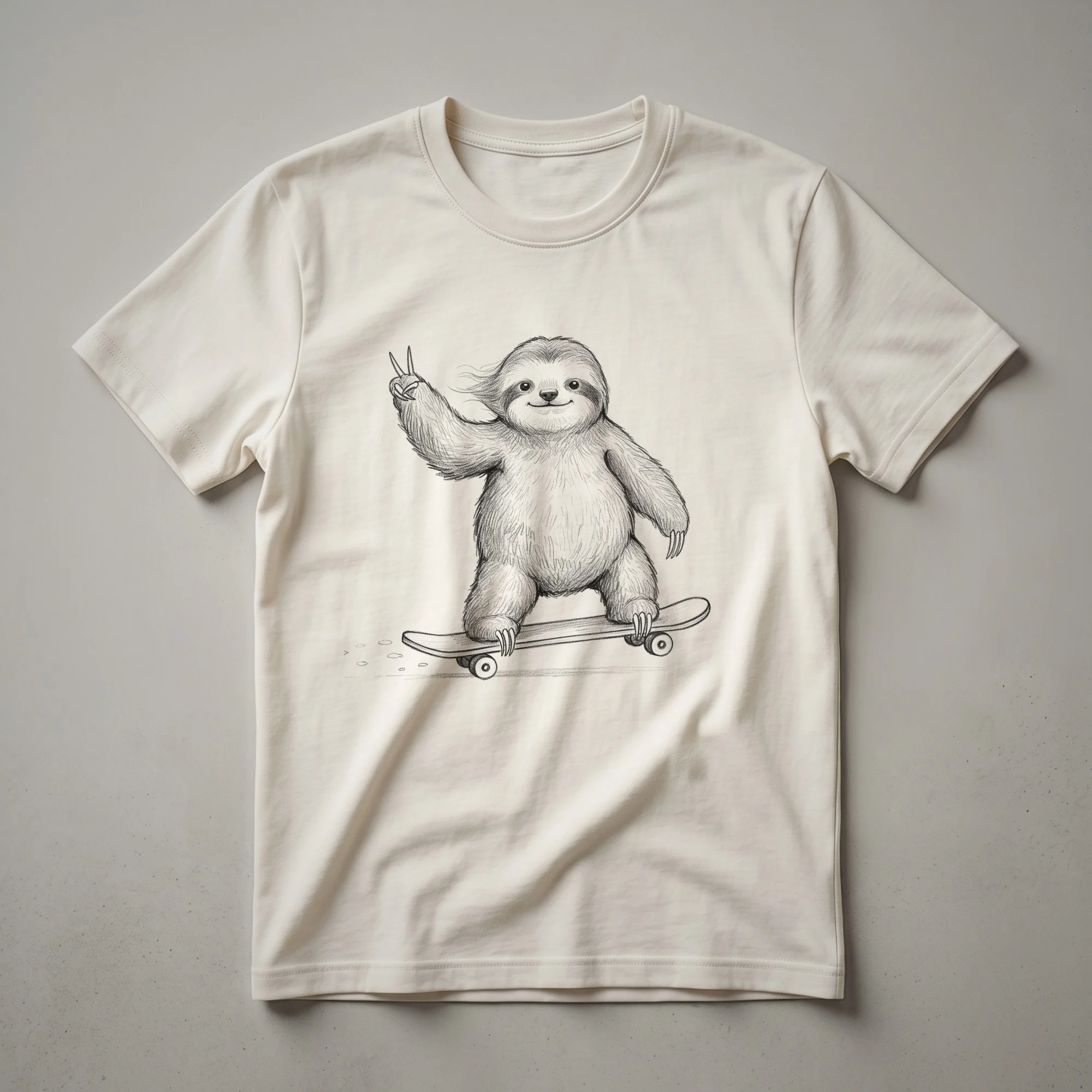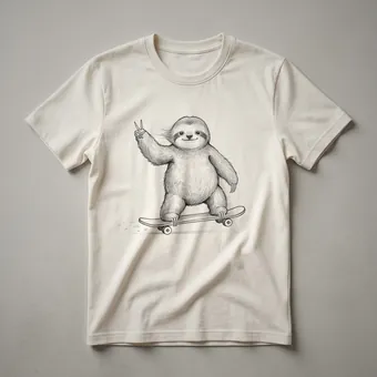Sloth lovers who appreciate a good laugh will reach for this eye-catching graphic tee. The design features a cartoon sloth in a relaxed pose, confidently riding a skateboard. This sloth, known for its slow-moving nature, is humorously depicted in a dynamic skateboarding stance, creating a playful contrast that is sure to bring a smile. The artwork has a distressed, vintage feel, adding a touch of retro cool to the overall aesthetic. This t-shirt is a thoughtful gift for anyone who enjoys the slower pace of life but also has a quirky sense of humor. It's a staple in the collection for those who find amusement in the unexpected. Imagine wearing this shirt to a casual hangout, a game night, or simply while relaxing at home. It’s a conversation starter that celebrates both the charm of sloths and the fun of skateboarding. This tee works well for individuals who identify with the laid-back vibe of sloths or simply enjoy unique, humorous animal designs. It’s a fun way to express personality and a love for all things sloth-related, making it a go-to tee for casual wear.