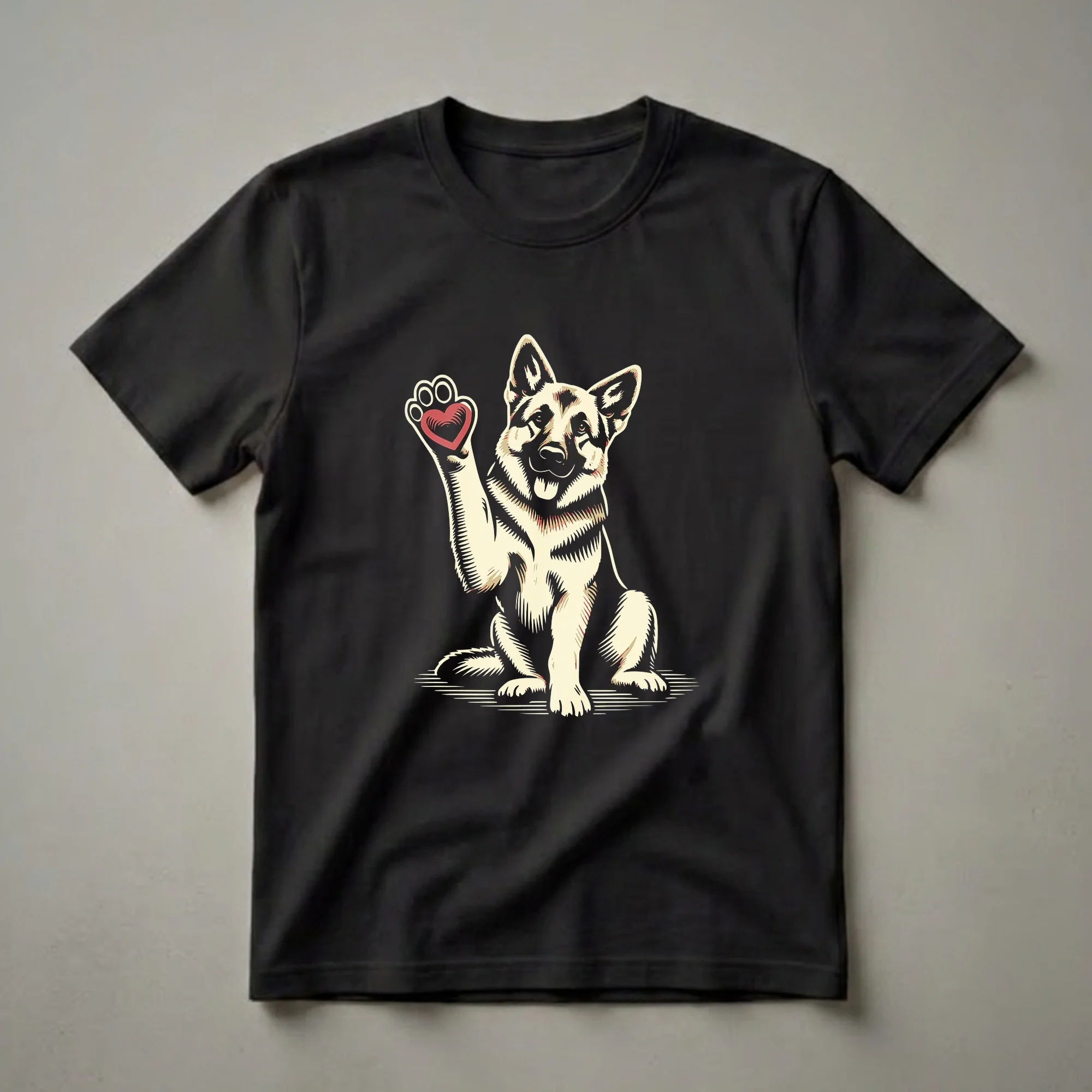 - Showcase your German Shepherd pride with this unique paw and heart graphic tee.