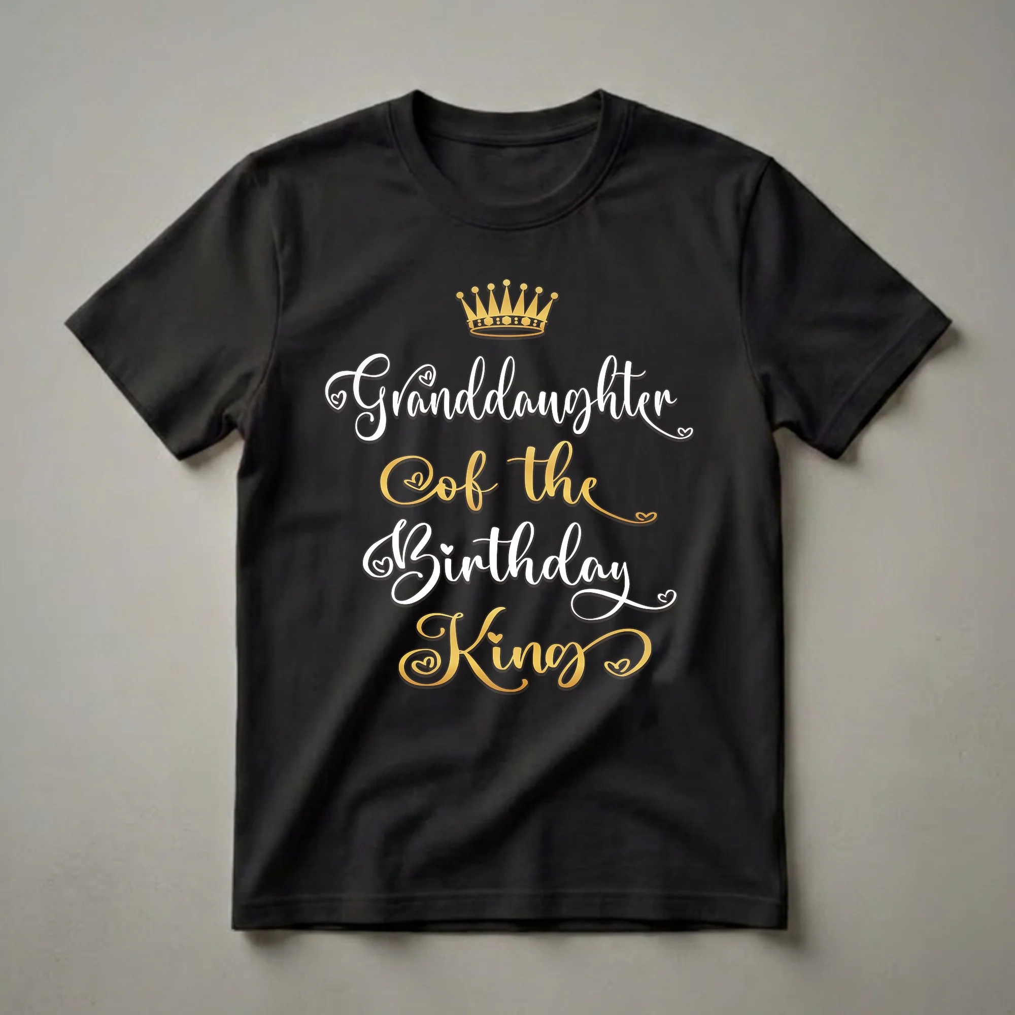 - Granddaughter of the Birthday King graphic tee for family celebrations.
