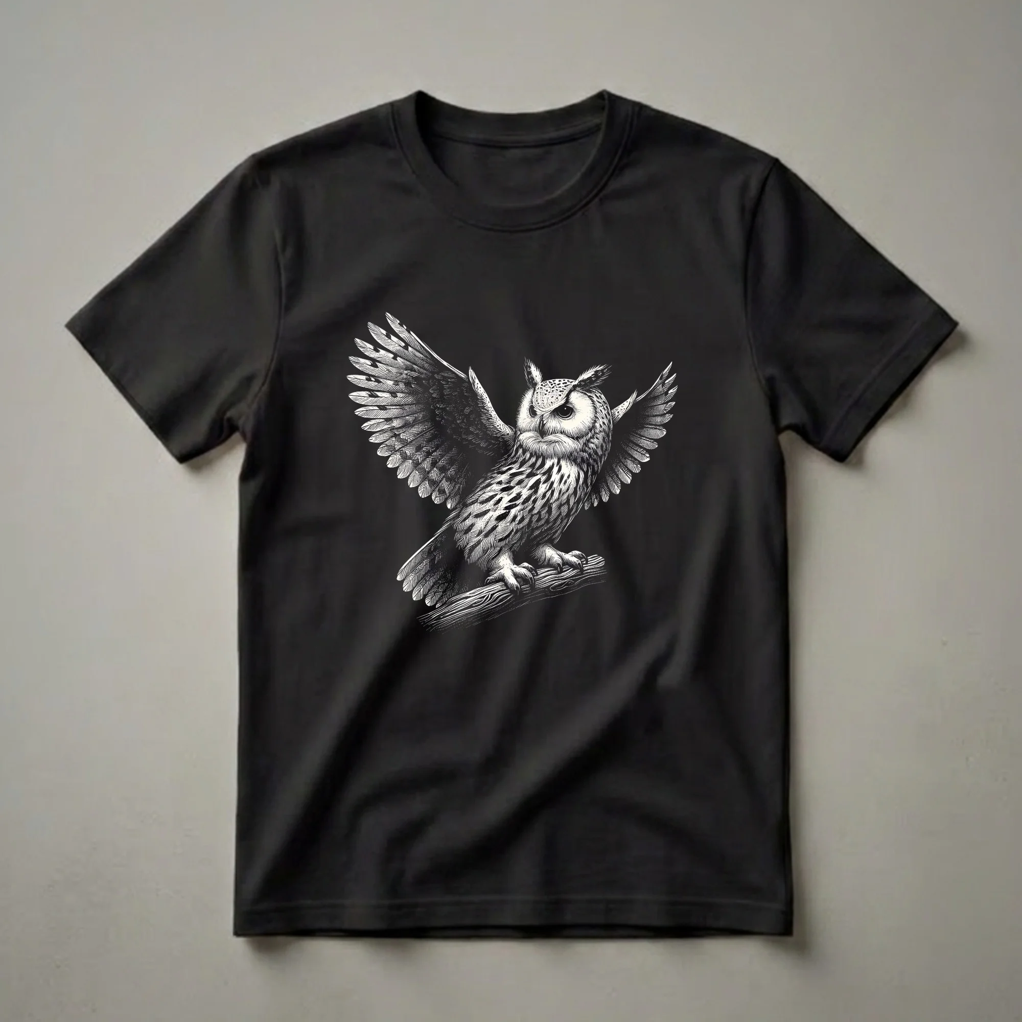 Hover to zoom · tap to expand Great Horned Owl Wings Spread Graphic T-Shirt for Bird Lovers