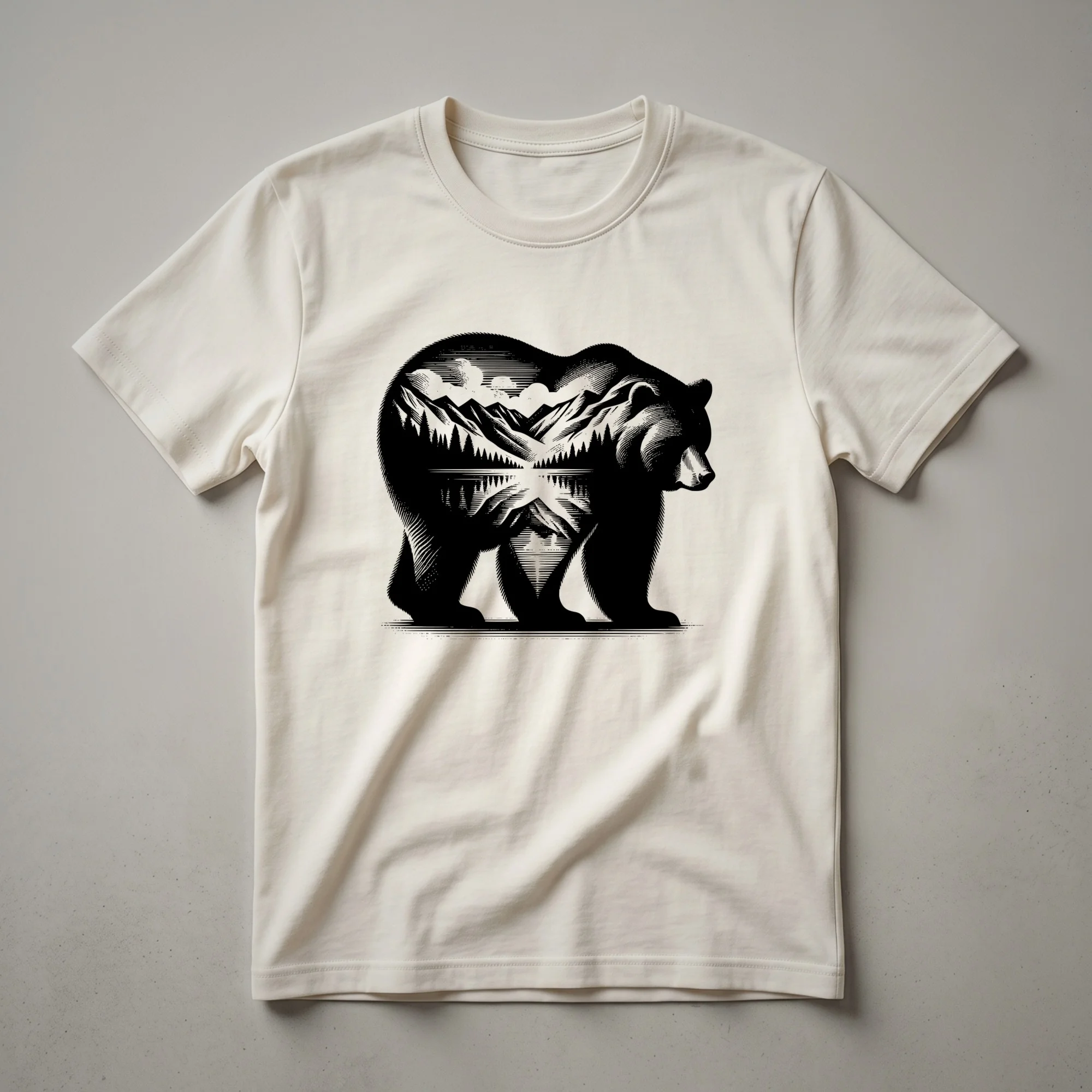 - Graphic t-shirt featuring a grizzly bear and mountain landscape for nature lovers.