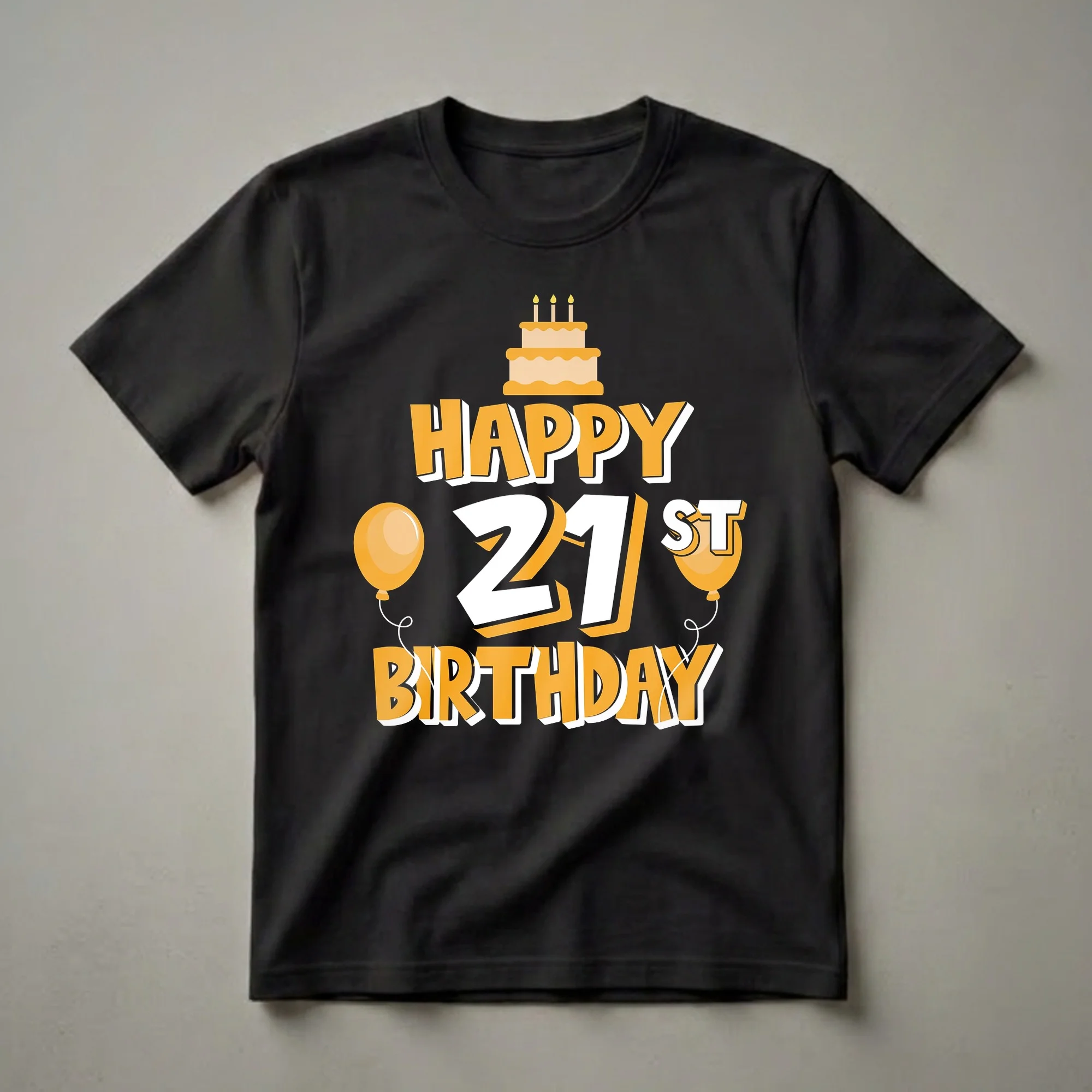 - Celebrate turning 21 with this festive 'Happy 21st Birthday' graphic tee.