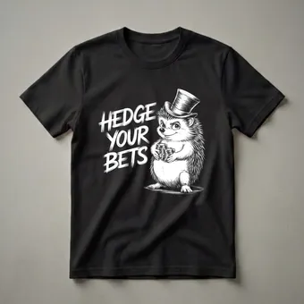 - The "Hedge Your Bets" text adds a humorous, punny element.