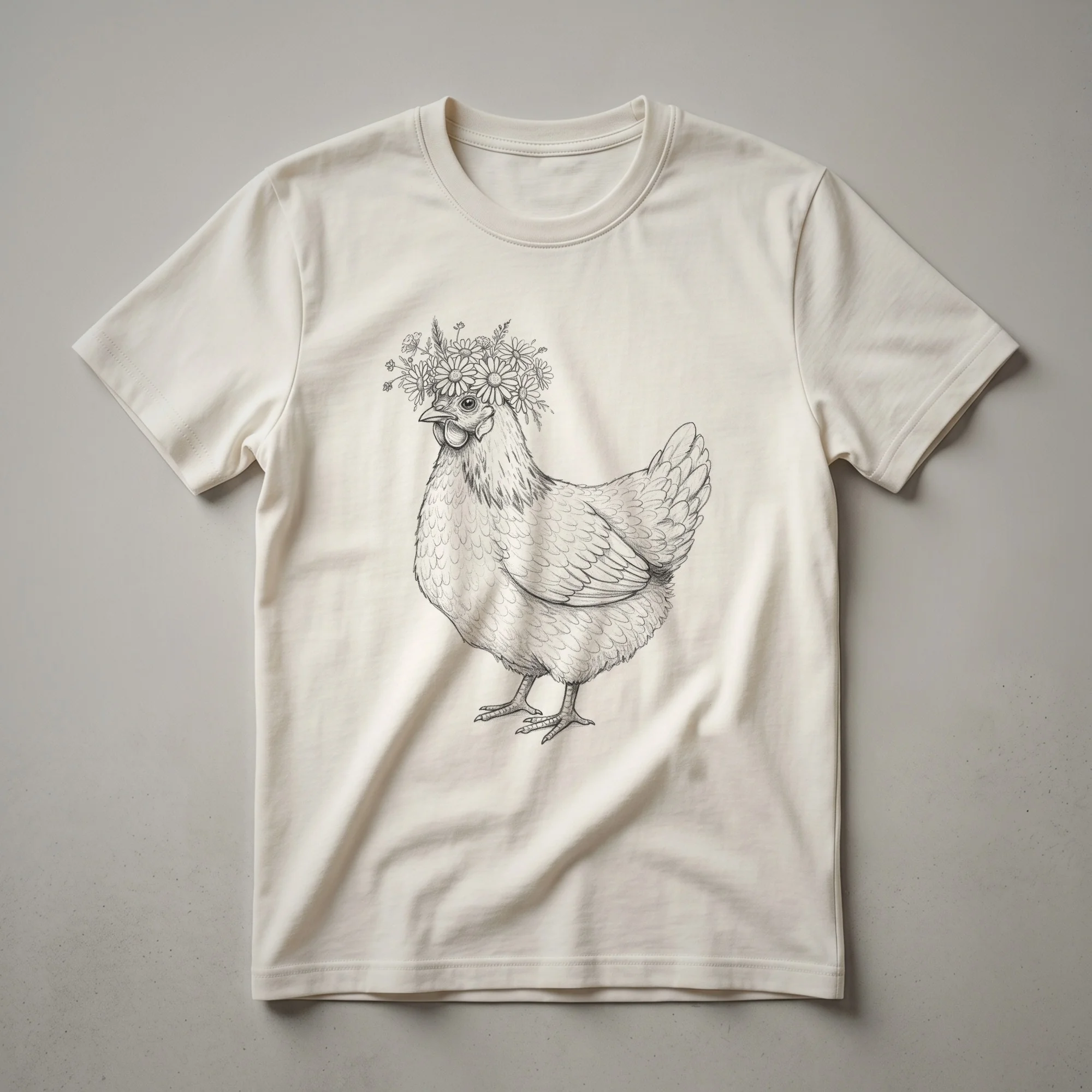 - Graphic tee for chicken keepers featuring a stylish hen with a floral crown.