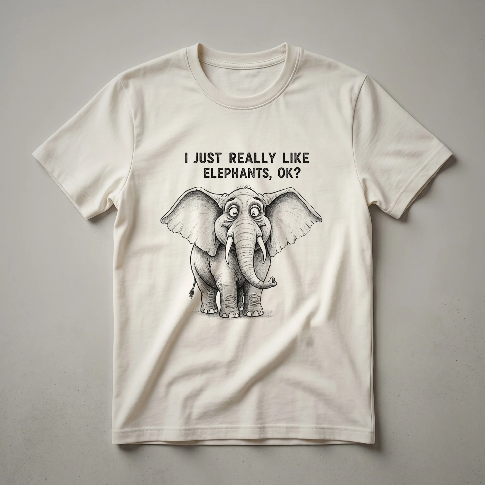 - The text 'I Just Really Like Elephants, Ok?' makes a humorous statement.