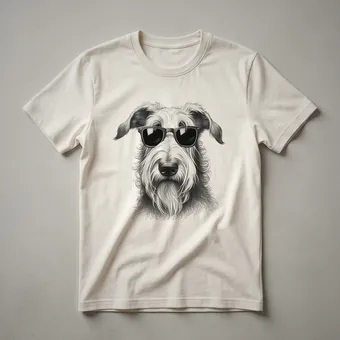 - Features a cool Irish Wolfhound wearing sunglasses.