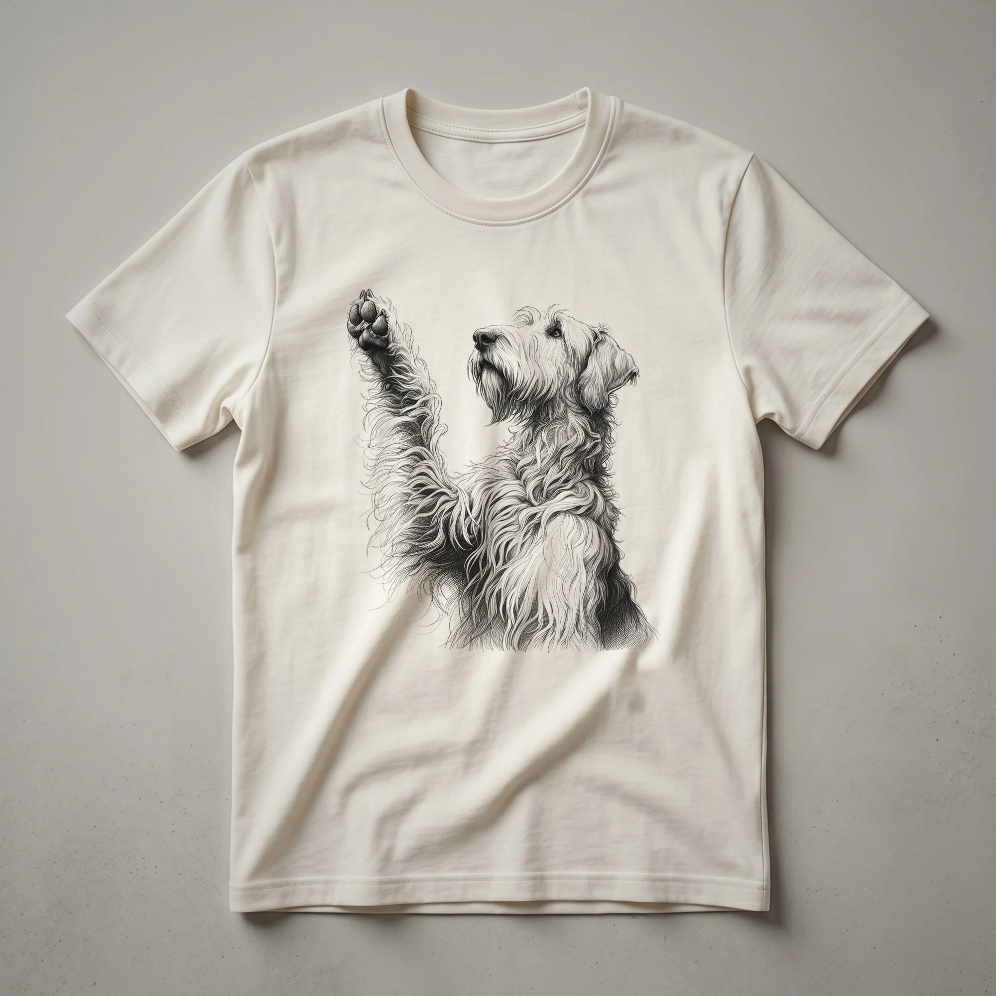 Irish Wolfhound owners know the gentle giant nature of these magnificent dogs. This striking graphic tee features a detailed illustration of an Irish Wolfhound, captured in the moment of raising its front paw. The design highlights the breed's distinctive appearance and noble stature, making it a standout piece for any canine enthusiast. Originating from Ireland, the Irish Wolfhound is one of the tallest dog breeds, historically used for hunting and guarding. Their calm demeanor and affectionate nature make them beloved companions. This t-shirt is a wonderful way for proud owners to express their connection to their large, loyal friend. It makes a thoughtful gift for the Irish Wolfhound mom or dad in your life, or for anyone who appreciates the grandeur of this ancient breed. Wear this shirt to your next dog park visit or casual outing to spark conversations with fellow dog lovers. It's a comfortable and stylish way to celebrate your favorite breed.