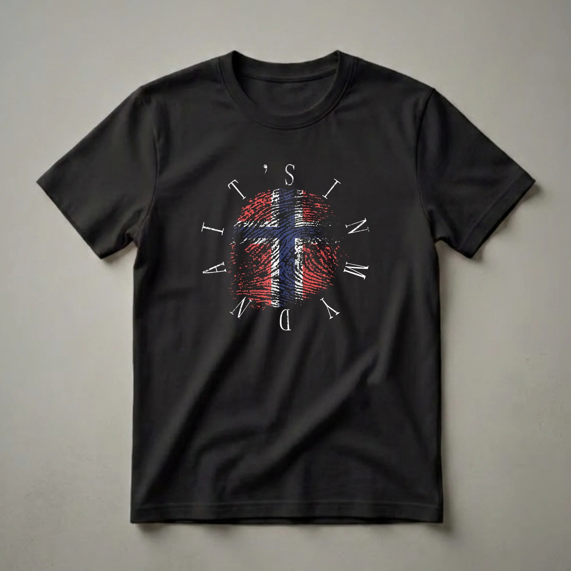Norwegian heritage runs deep, and this striking graphic tee is a bold way to express that connection. The design features a prominent fingerprint, symbolizing individuality and lineage, intricately overlaid with the vibrant colors of the Norwegian flag. The flag's iconic red, white, and blue cross stands out against the textured fingerprint pattern, creating a visually compelling representation of national identity. Encircling this central motif are the letters spelling out 'IT'S IN MY DNA', reinforcing the theme of inherent connection to Norway. This shirt is a fantastic choice for individuals of Norwegian descent, whether they live in Norway or abroad, wanting to celebrate their ancestry. It makes a thoughtful gift for family members, friends, or anyone who cherishes their Norwegian roots. Wear this tee to cultural festivals, family gatherings, or simply as a daily reminder of your proud heritage. The vintage aesthetic of the design adds a timeless appeal, making it a staple in any wardrobe celebrating international heritage.