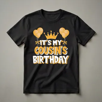 - Celebrate your cousin's birthday in this festive "It's My Cousin's Birthday" graphic tee with bold orange and white lettering.