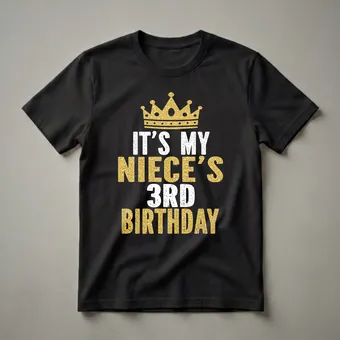 - Features a gold crown and distressed text that reads 'IT'S MY NIECE'S 3RD BIRTHDAY'.