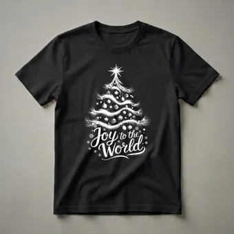 Celebrate the spirit of the season with this graphic tee featuring a stylized Christmas tree and the uplifting message "Joy to the World".The design features a beautifully rendered, stylized Christmas tree in white, complete with delicate ornaments and a radiant star at its peak. Below the tree, the phrase 'Joy to the World' is elegantly scripted, evoking the spirit of the season. Surrounding the text are whimsical snowflakes, adding a touch of winter magic. This shirt is a thoughtful gift for anyone who loves to celebrate Christmas with matching family attire. It's a thoughtful choice for holiday photos, festive gatherings, or simply spreading cheer throughout the winter months. The classic imagery makes this a staple for any holiday wardrobe, ensuring a joyful and coordinated look for everyone. Wear it to your next Christmas party or while decorating the tree to share the holiday spirit.