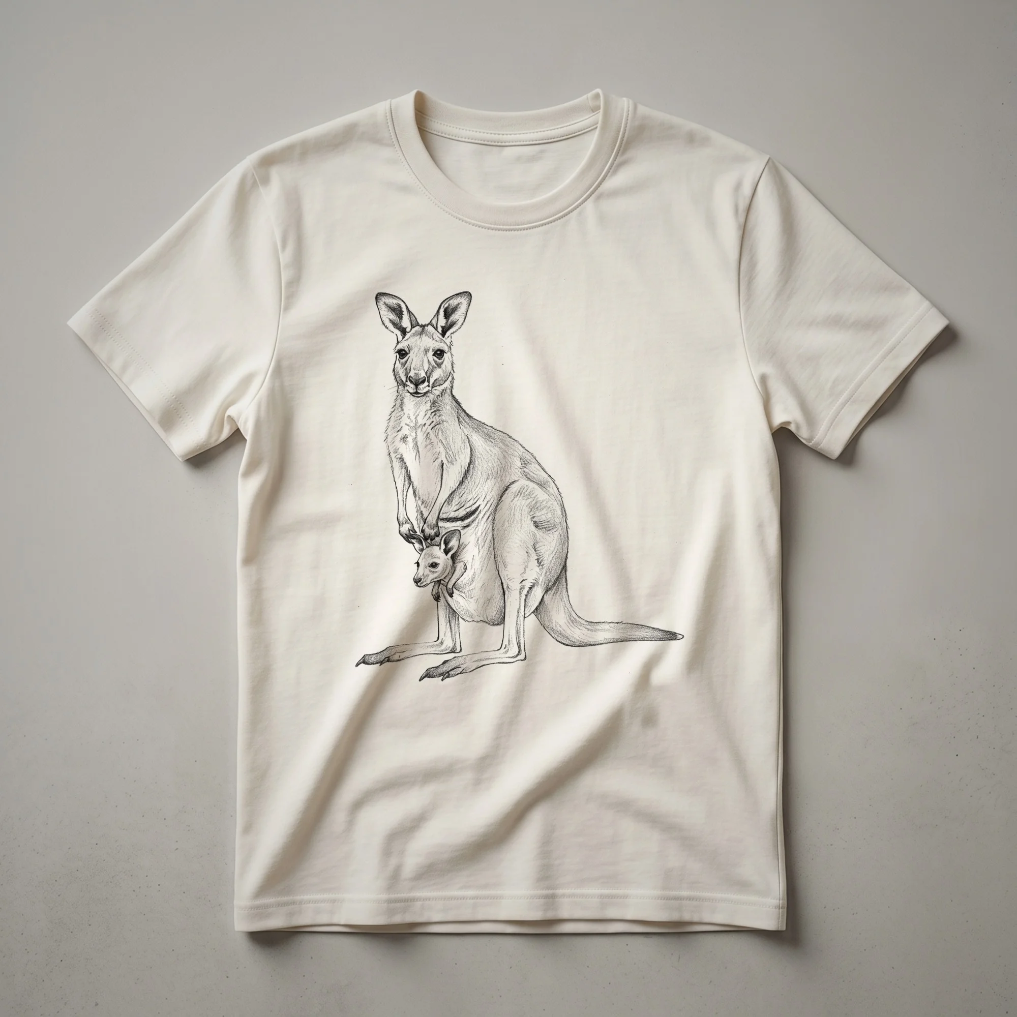 - Kangaroo mom and baby sketch drawing t-shirt for wildlife lovers.
