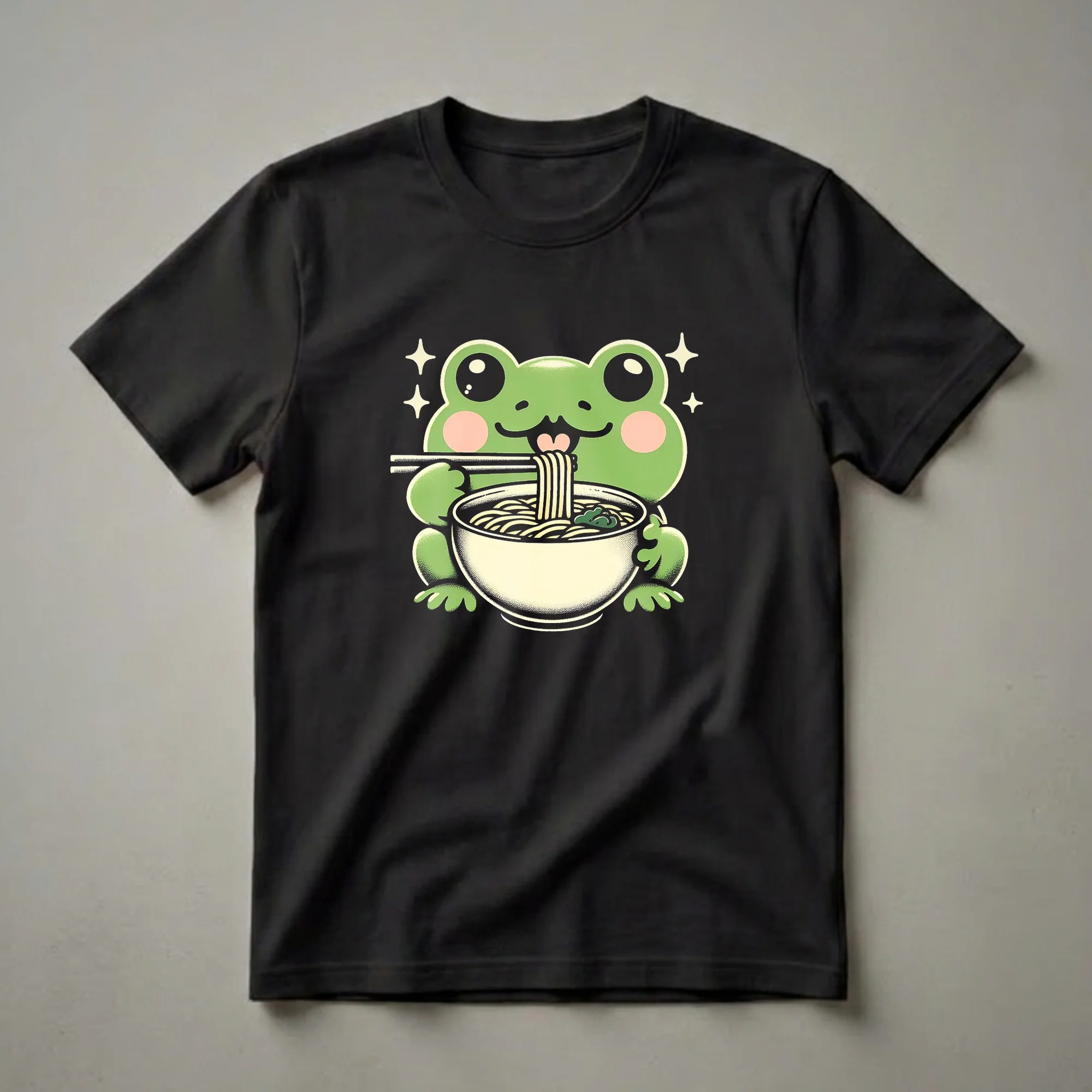 Hover to zoom · tap to expand Kawaii Frog Eating Ramen Graphic T-Shirt for Foodie Fun