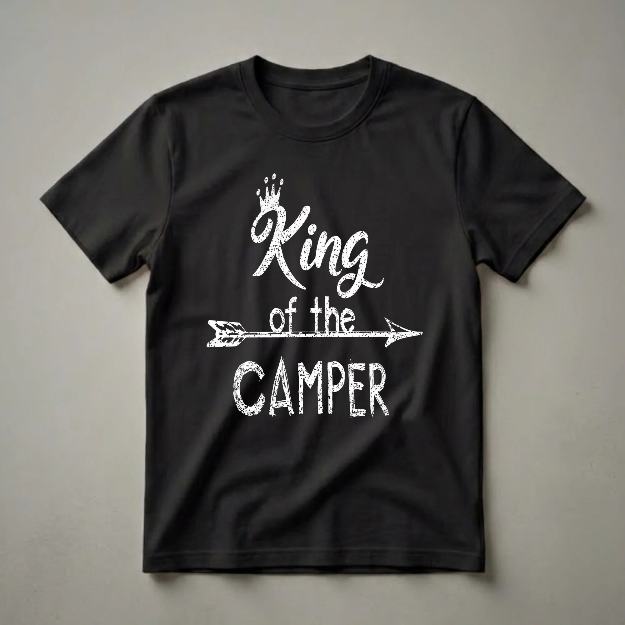 - Show off your campsite reign with the distressed "King of the Camper" graphic.