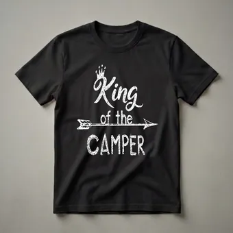 - "King of the Camper" graphic tee for men who love camping.