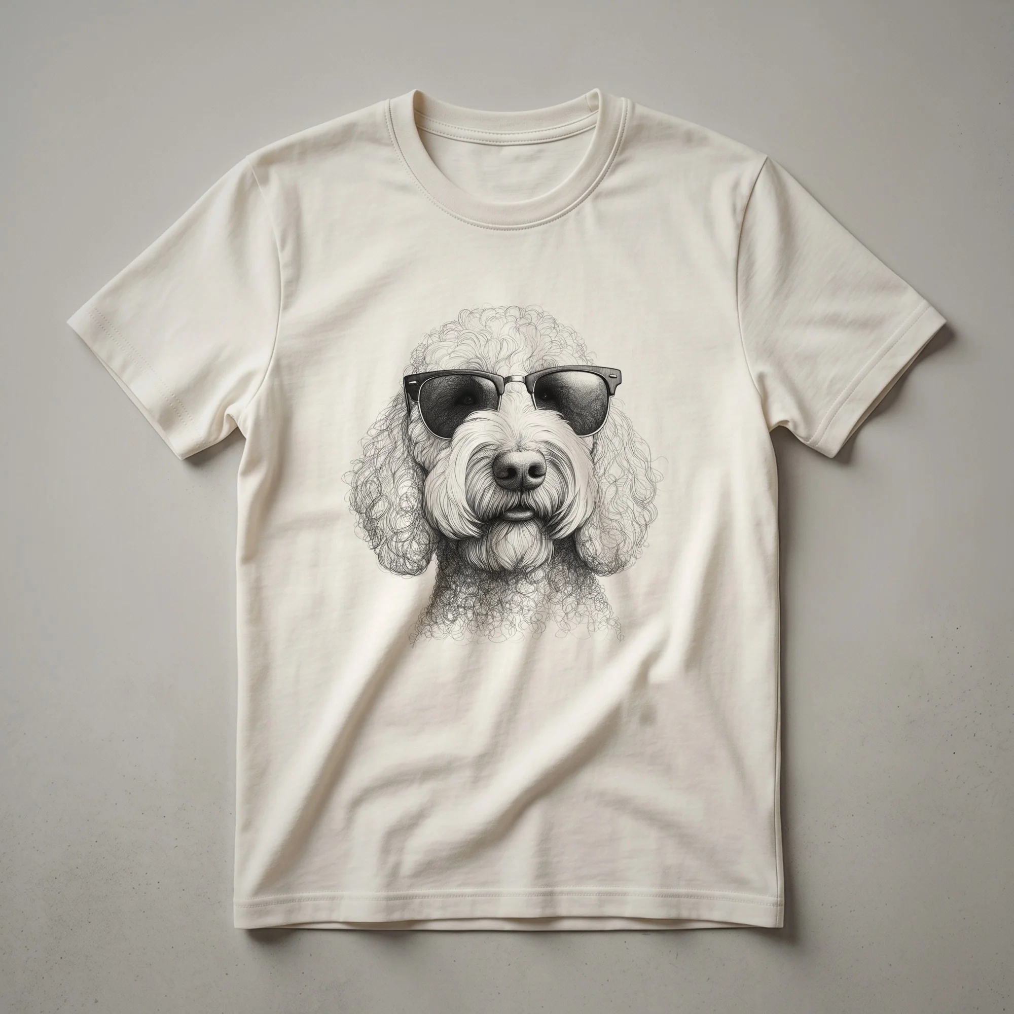 Labradoodle dads know the joy of having a furry best friend with a playful spirit and a love for adventure. This graphic tee captures that sentiment with a striking design that's sure to turn heads. The central image features a Labradoodle sporting cool sunglasses, set against a distressed American flag backdrop, embodying a patriotic and fun-loving vibe. Labradoodles, known for their intelligence and friendly nature, are a popular choice for families and individuals alike, often described as eager to please and highly trainable. This shirt is a fantastic way for any Labradoodle owner to express their affection for their canine companion. It makes a thoughtful gift for Father's Day, birthdays, or just because for the dad who cherishes his Labradoodle. Wear this comfortable t-shirt to casual outings, barbecues, or while spending quality time with your dog, showcasing your unique bond and patriotic spirit. It's a go-to tee for any proud Labradoodle dad.