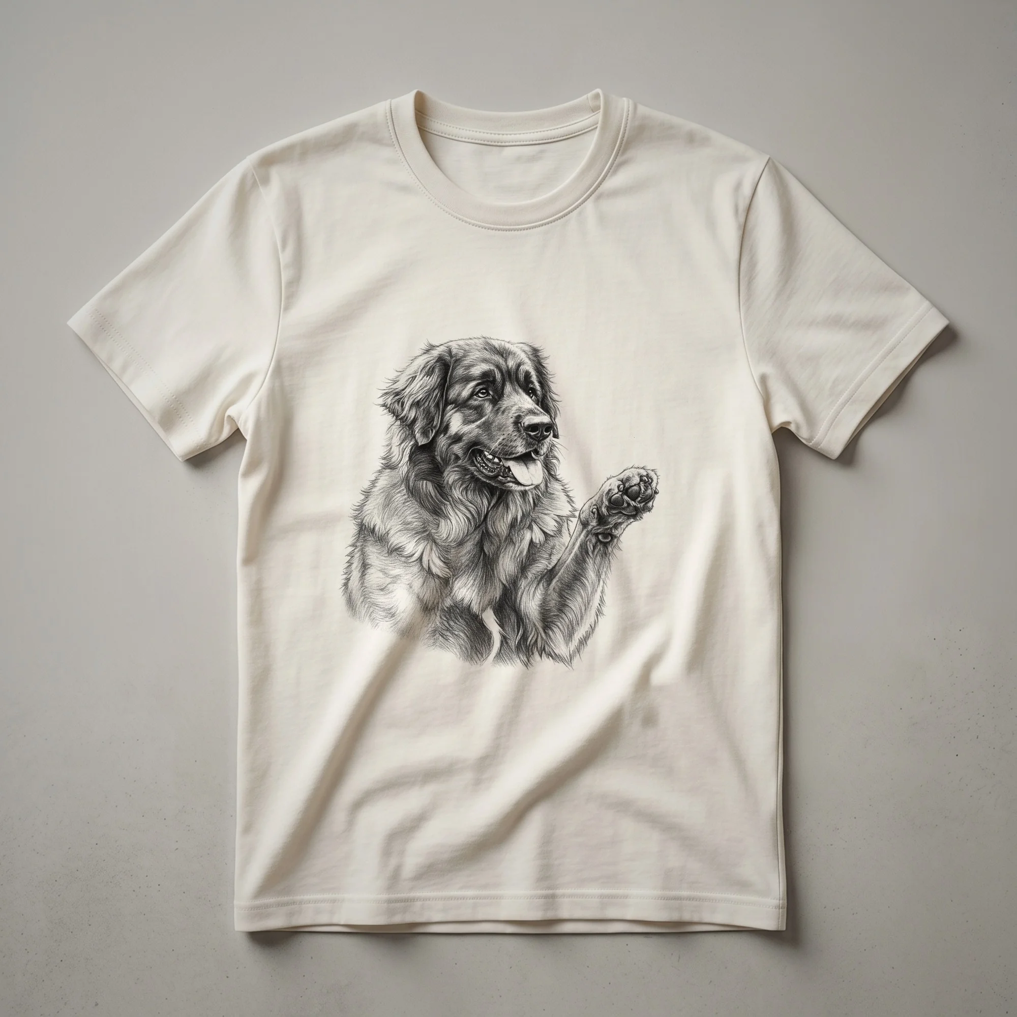 Leonberger enthusiasts will adore this sketch-style graphic featuring their beloved breed lifting a friendly paw.This graphic tee features a striking sketch of a Leonberger dog, its paw raised in a friendly gesture. The design captures the breed's calm demeanor and impressive stature, making it a standout piece for any dog lover. Leonbergers, originating from Germany, are known for their loyalty and affectionate temperament, often forming deep bonds with their families. This t-shirt is a wonderful way for Leonberger moms and dads to express their pride and affection for their furry companions. It makes a thoughtful gift for birthdays, holidays, or just because for the Leonberger enthusiast in your life. Wear this comfortable shirt to dog parks, casual outings, or while relaxing at home with your beloved canine friend, celebrating the special connection you share.