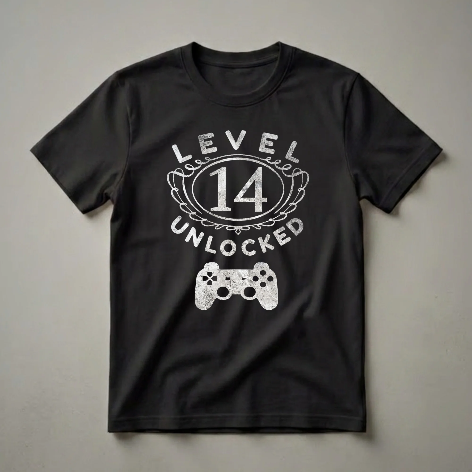 Turning fourteen is a significant milestone, marking entry into mid-teen years and often a deeper dive into passions like gaming. This graphic tee captures that excitement with its bold "LEVEL 14 UNLOCKED" design, complete with a distressed vintage effect that gives it a cool, retro feel. Below the text, a classic video game controller graphic solidifies the theme, making it instantly recognizable to any gaming enthusiast. This shirt is a fantastic way for any 14-year-old to express their love for video games and celebrate their birthday. It's a thoughtful gift for the teen who spends hours mastering new levels and conquering virtual worlds. Imagine them wearing this t-shirt to their birthday party or casual hangouts with friends, showcasing their gamer pride. This tee works well for any teen celebrating their 14th birthday, whether they are into PC gaming, console gaming, or mobile games. It’s a fun piece of apparel that celebrates a gamer's journey and the achievement of reaching a new level of maturity and skill. This shirt is a staple for any young gamer's wardrobe.