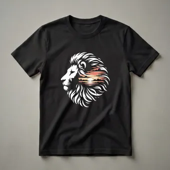 Lions, often called the 'King of the Beasts,' are powerful symbols of courage and strength, and this graphic tee captures that majestic spirit. The design features a bold white silhouette of a lion's head, its iconic mane artfully filled with a vibrant retro sunset scene. Hues of warm orange, peach, and tan blend across the sky, reflecting on a calm body of water below silhouetted landforms. This unique t-shirt is a statement piece for anyone who admires these magnificent creatures. Lions are social animals, typically living in prides, and are found primarily in Africa and parts of India. This shirt works well for nature lovers, safari enthusiasts, or anyone who appreciates striking animal art. It makes a thoughtful gift for a friend or family member who is drawn to the wild and its inhabitants. Wear this tee to casual outings, nature walks, or while sharing stories about your favorite animals.