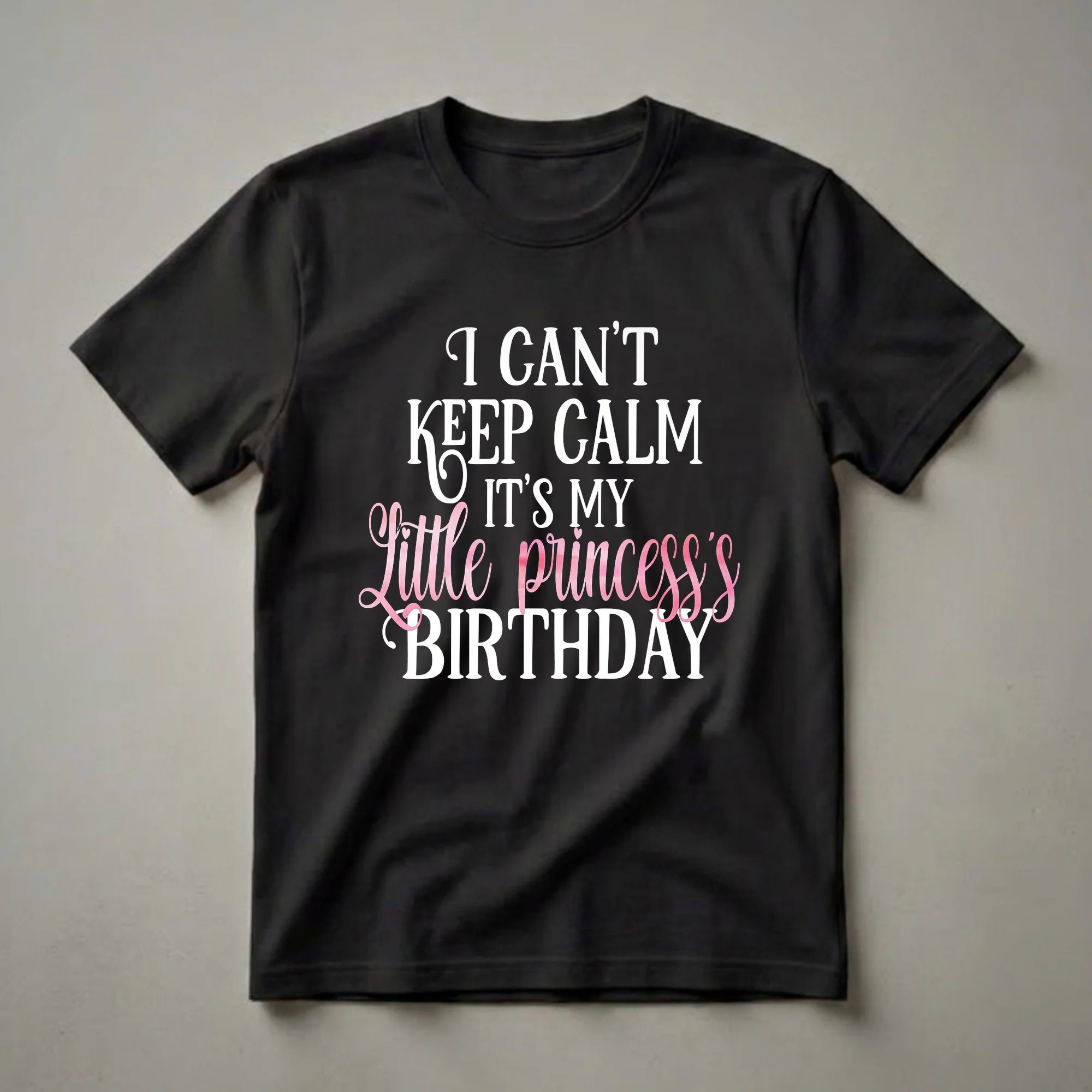 - "I Can't Keep Calm It's My Little Princess's Birthday Party" graphic tee.