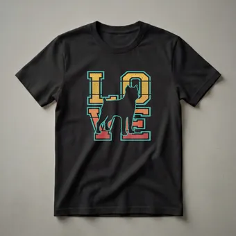 - Features a Brussels Griffon silhouette artfully integrated within the word 'LOVE'.