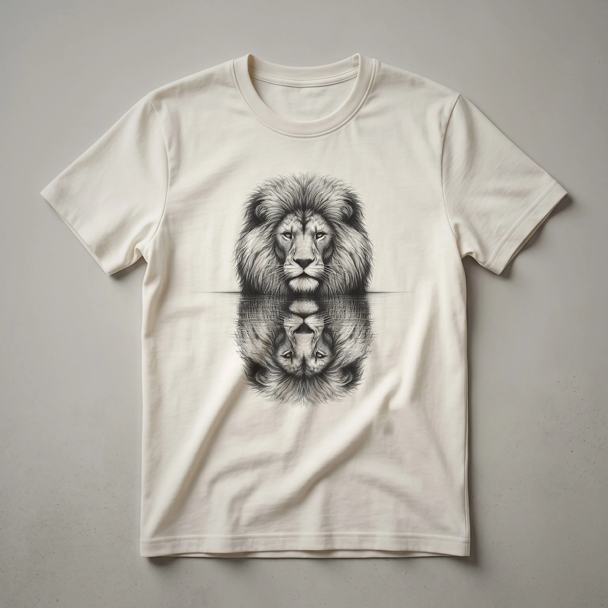 - A striking lion reflection graphic t-shirt for men and women.