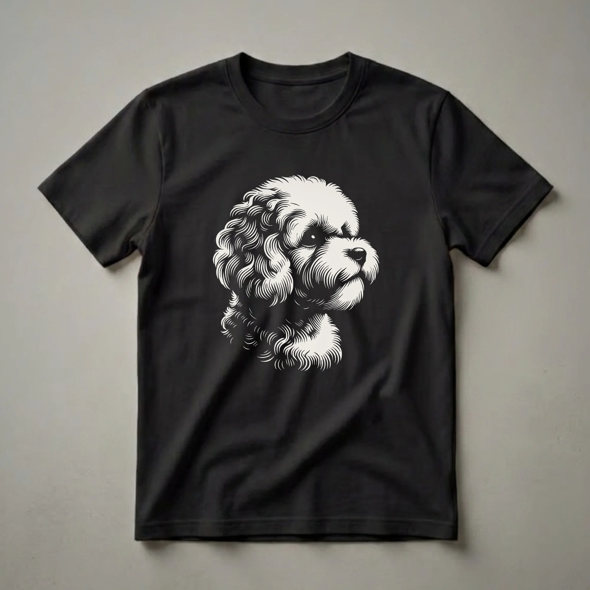 Showcase your love for Maltipoos with this artistic, cream-colored dog face design, presented in a captivating linework style. This eye-catching graphic tee features a detailed linework portrait of a Maltipoo's face, rendered in a classic cream color against a stark black background. The intricate lines capture the breed's characteristic curly fur and gentle expression, making it a standout piece for any dog enthusiast. Maltipoos, a crossbreed between a Maltese and a Poodle, are known for their playful nature and hypoallergenic coats, making them a popular choice for families and individuals alike. This shirt is a wonderful way for any Maltipoo mom or dad to express their devotion to their four-legged friend. It makes a thoughtful gift for birthdays, holidays, or just because. Wear this unique Maltipoo shirt to your next dog park visit or casual outing to spark conversations with fellow dog lovers. It's a staple in the collection for anyone who cherishes their Maltipoo companion.