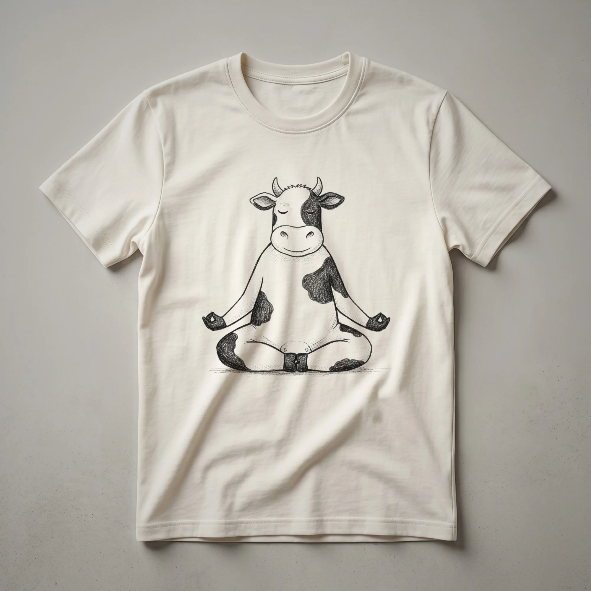 Hover to zoom · tap to expand Meditation Cow Graphic T-Shirt for Farmers and Yoga Enthusiasts