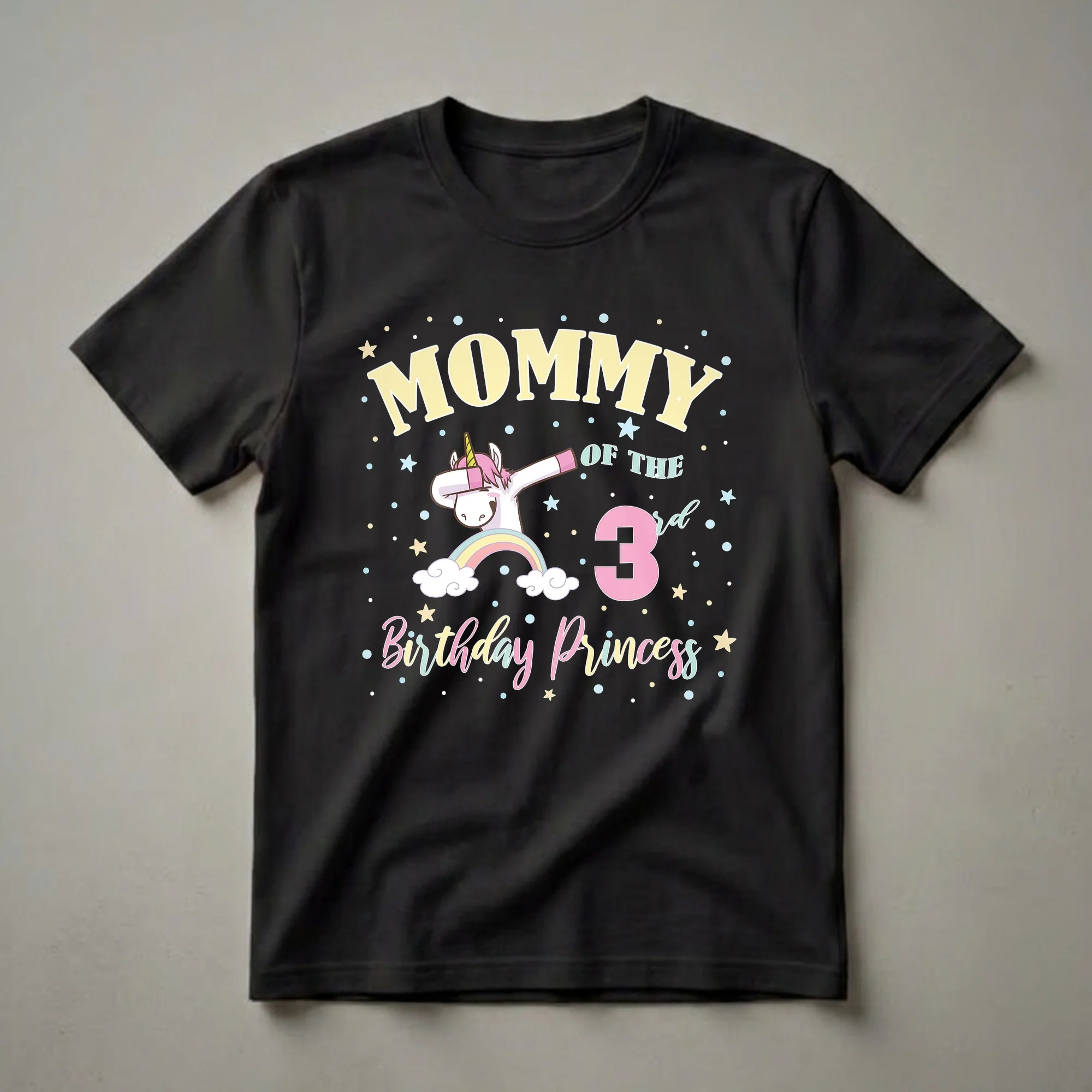 - Mommy of the 3rd Birthday Princess shirt for unicorn-loving moms.