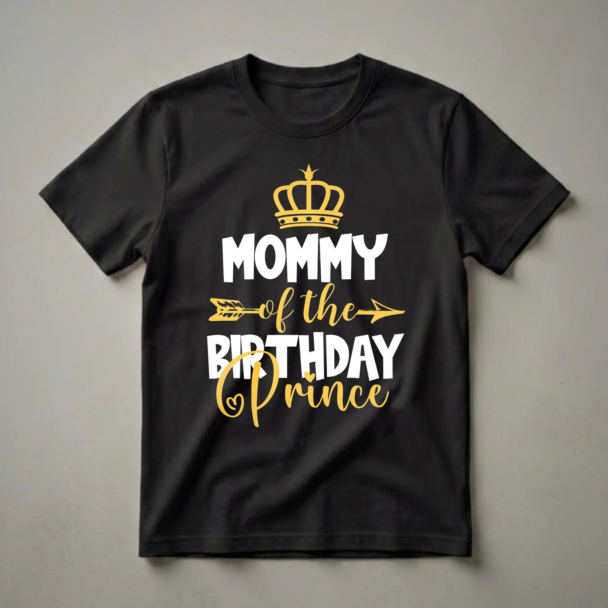 - Mommy of The Birthday Prince graphic tee for proud mothers.