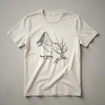 Mount Whitney, the highest peak in the contiguous United States, is captured in a striking sketch art design on this t-shirt. Hikers and climbers who have summited this iconic California landmark will appreciate the detailed linework depicting its rugged slopes and the dramatic silhouette of a weathered tree in the foreground. Mount Whitney stands at 14,505 feet in the Sierra Nevada mountain range, a challenging and rewarding destination for outdoor enthusiasts. This graphic tee is a staple for anyone who cherishes the natural beauty of California's landscapes. It makes a thoughtful gift for the adventurer in your life who dreams of conquering this majestic peak or cherishes memories of their ascent. Wear this shirt on your next outdoor excursion or casual outing to showcase your passion for high-altitude exploration and the spirit of the Golden State.