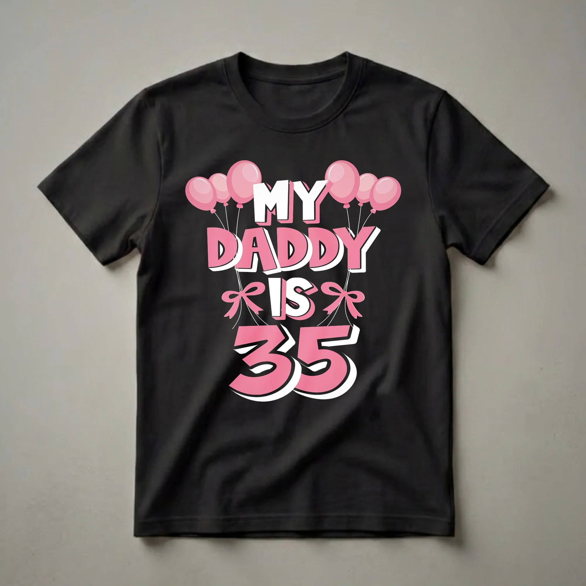 - "My Daddy Is 35" graphic tee celebrates a father's 35th birthday milestone.