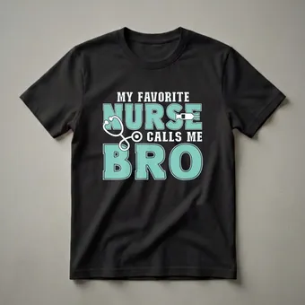- Funny 'My Favorite Nurse Calls Me Bro' graphic tee for brothers of nurses.