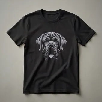 Neapolitan Mastiff owners who appreciate the breed's imposing presence and gentle nature will reach for this unique graphic tee. This striking art features a detailed, monochromatic drawing of a Neapolitan Mastiff's face, rendered in a vintage scratchboard style. The intricate lines capture the breed's characteristic wrinkled brow, heavy jowls, and soulful eyes, all set against a stark black background. The Neapolitan Mastiff, originating from Italy, is known for its ancient lineage and protective instincts, making it a loyal companion. This shirt is a thoughtful gift for any Neapolitan Mastiff mom or dad, celebrating their connection to this magnificent breed. Wear this eye-catching tee to dog parks, casual outings, or while relaxing at home, letting your passion for these impressive dogs be known. It's a staple for any dog lover's wardrobe, offering a sophisticated nod to canine appreciation. This apparel is a conversation starter for anyone who admires these gentle giants.