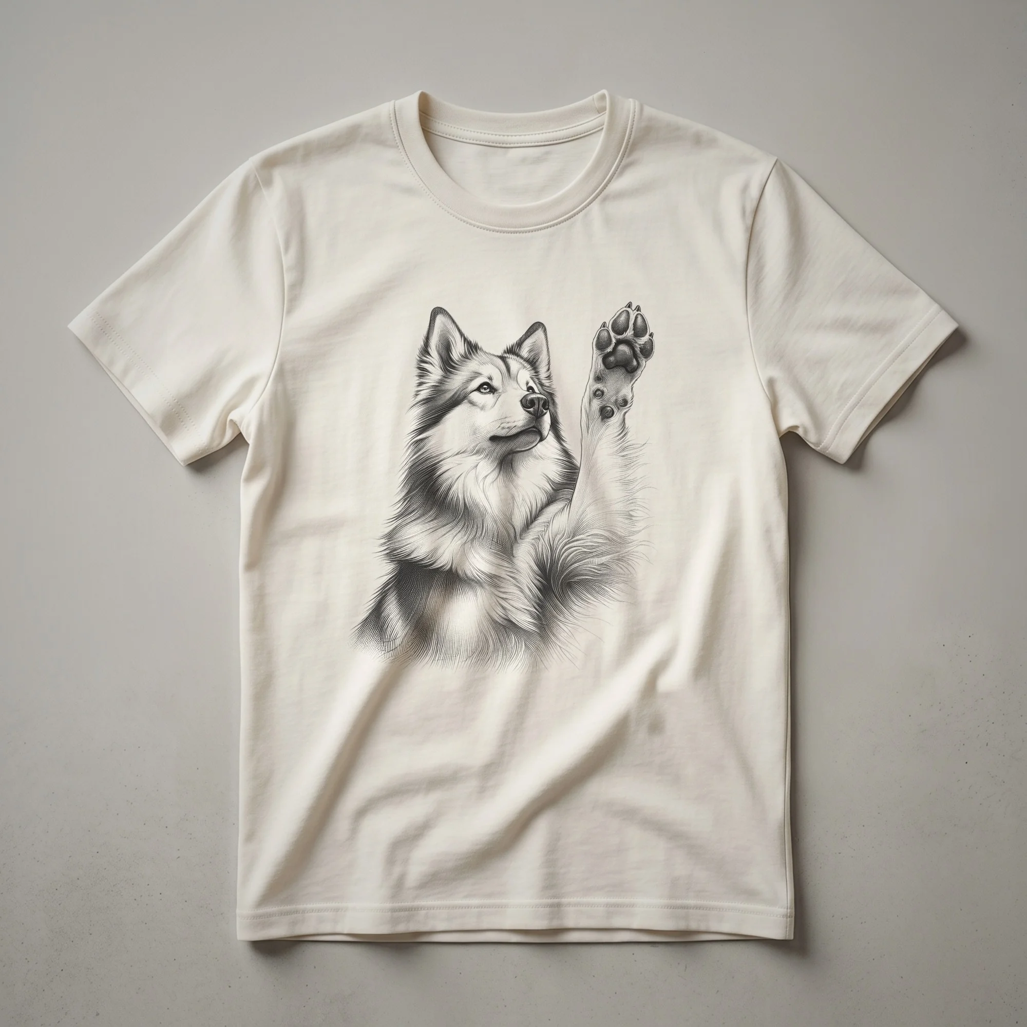 - Norwegian Elkhound dog paw graphic t-shirt for proud owners.