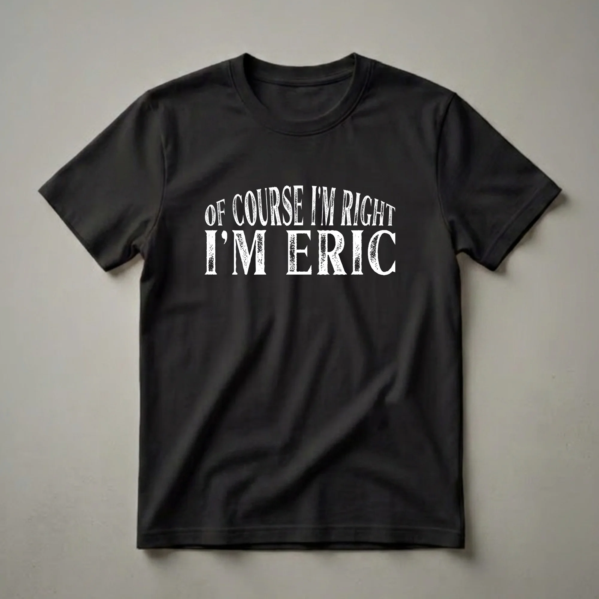 - This statement shirt humorously declares 'OF COURSE I'M RIGHT I'M ERIC' for any confident Eric.