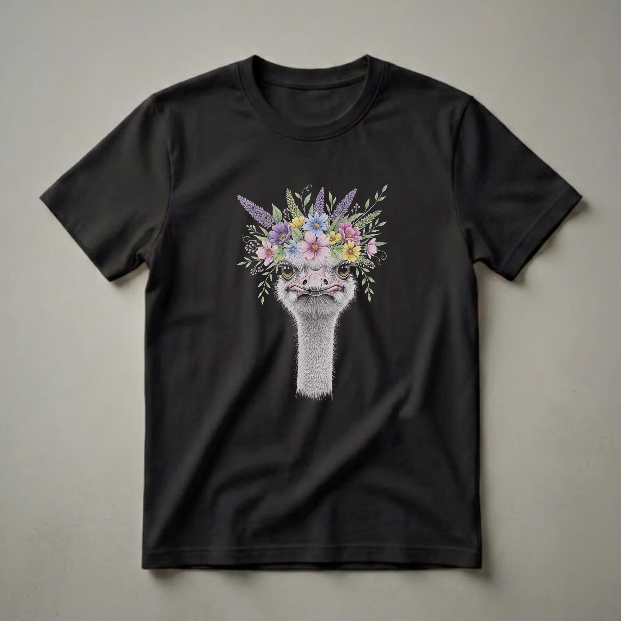 Hover to zoom · tap to expand Ostrich with Floral Crown Watercolor Art T-Shirt for Nature Lovers