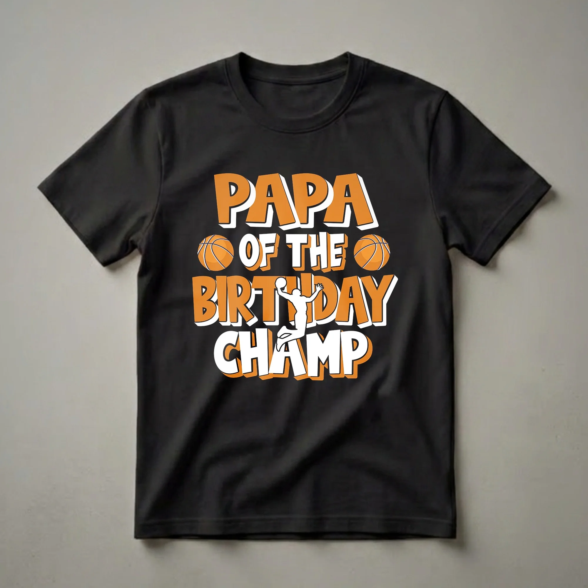 - Papa of the Birthday Champ t-shirt for proud grandfathers celebrating a basketball star.