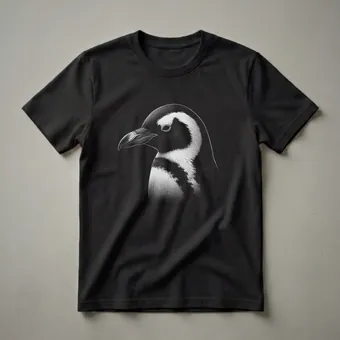 Penguin lovers will appreciate the intricate detail of this graphic tee, featuring a striking line art illustration of a penguin's head. The artwork captures the distinctive black and white plumage and the sharp beak of the bird with fine, delicate lines against a solid black background. Penguins are flightless birds renowned for their aquatic adaptations, spending much of their lives in the ocean hunting for food. Species like the Magellanic penguin, often depicted with similar markings, inhabit the coasts of South America. This t-shirt is a thoughtful gift for any nature enthusiast, bird watcher, or someone who admires these fascinating creatures. Wear this unique shirt to your next nature walk, birding expedition, or casual outing to spark conversations about wildlife. It's a staple in the collection for anyone who cherishes the natural world and its inhabitants.