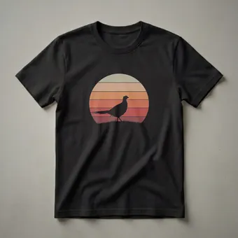 - Striking pheasant silhouette graphic tee with a warm, retro sunset art design.