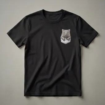 Wombat lovers will adore this unique graphic t-shirt featuring a detailed drawing of a wombat peeking out of a pocket. The artwork captures the endearing face and furry paws of this marsupial, known for its burrowing habits and stocky build. Wombats are native to Australia and are often found in forests, woodlands, and grasslands, where they create extensive burrow systems. This eye-catching tee is a fantastic way for anyone to express their appreciation for these fascinating creatures. It makes a thoughtful gift for wildlife enthusiasts, hikers, or anyone who admires the unique fauna of Australia. Wear this comfortable shirt to casual outings, nature walks, or while sharing your passion for animals. This wombat shirt is a staple in any animal lover's wardrobe, offering a blend of art and appreciation for the natural world.
