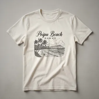 - Poipu Beach Hawaii sketch art graphic tee for island travelers.