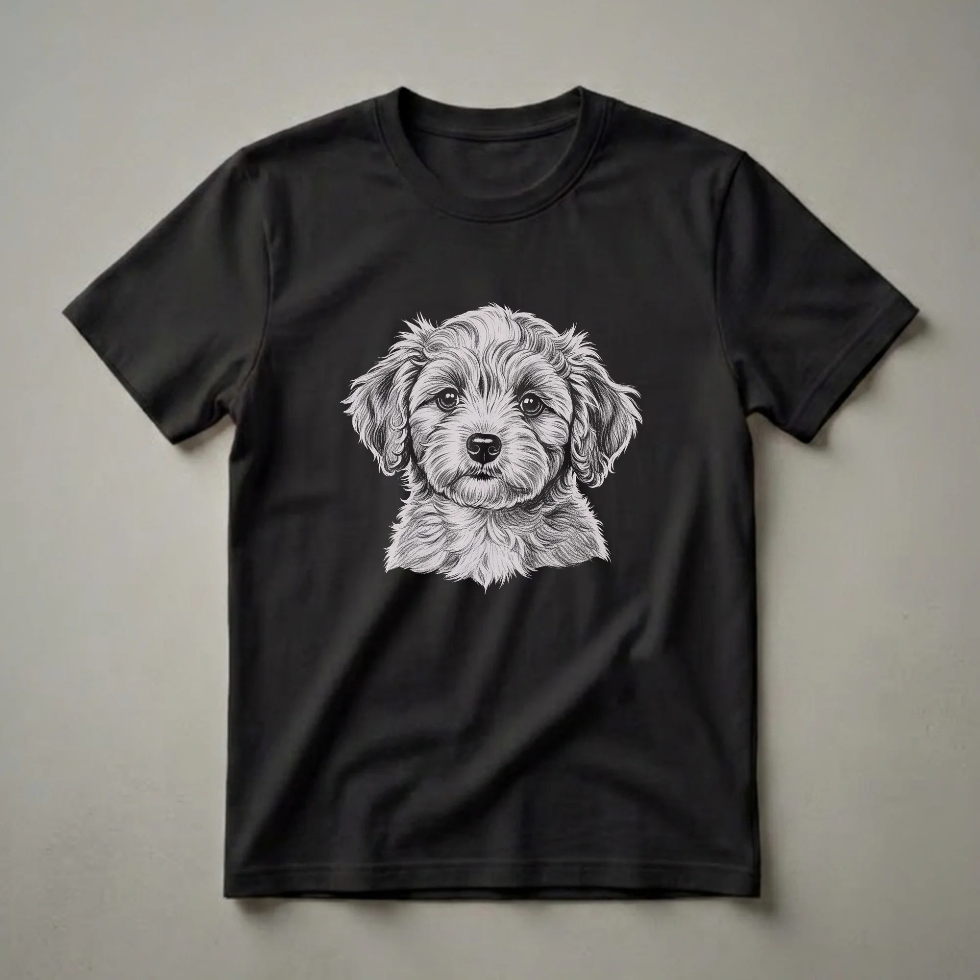 Poochon owners know the joy these small, fluffy dogs bring into a home. This t-shirt features a detailed pencil drawing of a Poochon's face, capturing its endearing expression and characteristic curly fur. The art style evokes a vintage wildlife illustration, making it a unique piece of apparel for any dog enthusiast. Poochons, a crossbreed between a Poodle and a Bichon Frise, are known for their playful and affectionate nature, often described as having a 'clown-like' personality. This graphic tee is a wonderful way for a Poochon mom or dad to express their bond with their pet. It makes a thoughtful gift for birthdays, holidays, or just because. Wear this shirt to your next dog park visit or casual outing and let your love for your canine friend shine through. This eye-catching design is a staple for any dog lover's wardrobe, celebrating the charm of this beloved breed.