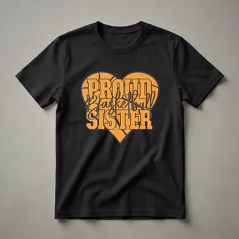 Basketball sisters know the thrill of the game, from buzzer-beaters to fast breaks. This graphic tee celebrates that unique bond, featuring bold orange lettering that spells out 'Proud Basketball Sister' within the iconic shape of a basketball heart. The design uses a combination of block and script fonts, creating a dynamic visual that stands out. This shirt is a fantastic way for any sister to show her support for her player, whether they're a star on the court or just starting out. It's a staple in the collection for any family involved in the sport. Imagine wearing this tee to cheer from the sidelines during a high school game or a college match. It also makes a thoughtful gift for birthdays or holidays for the sister who always has her sibling's back. This t-shirt is a declaration of pride and a symbol of family connection through the love of basketball. It's a go-to tee for game days and beyond, a thoughtful choice for sisters who live and breathe the sport.