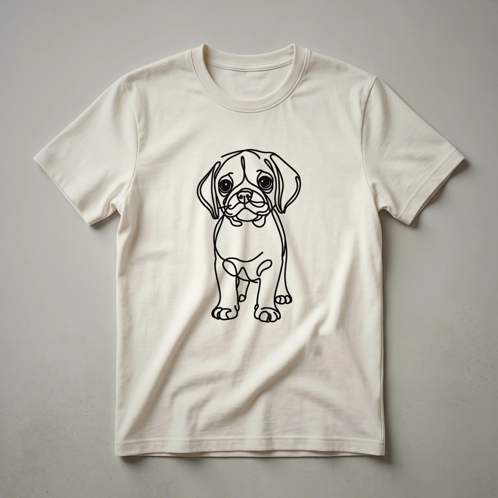 - A minimalist line art t-shirt designed for proud Puggle parents.