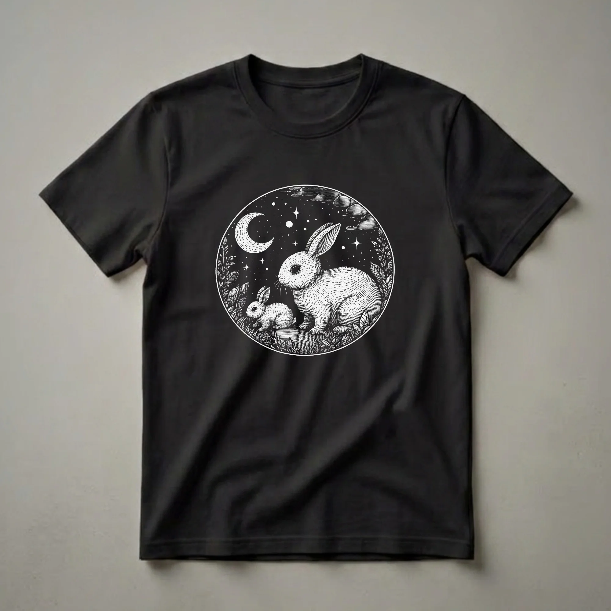 Hover to zoom · tap to expand Rabbit Family Night Scene Graphic T-Shirt for Moms and Animal Lovers